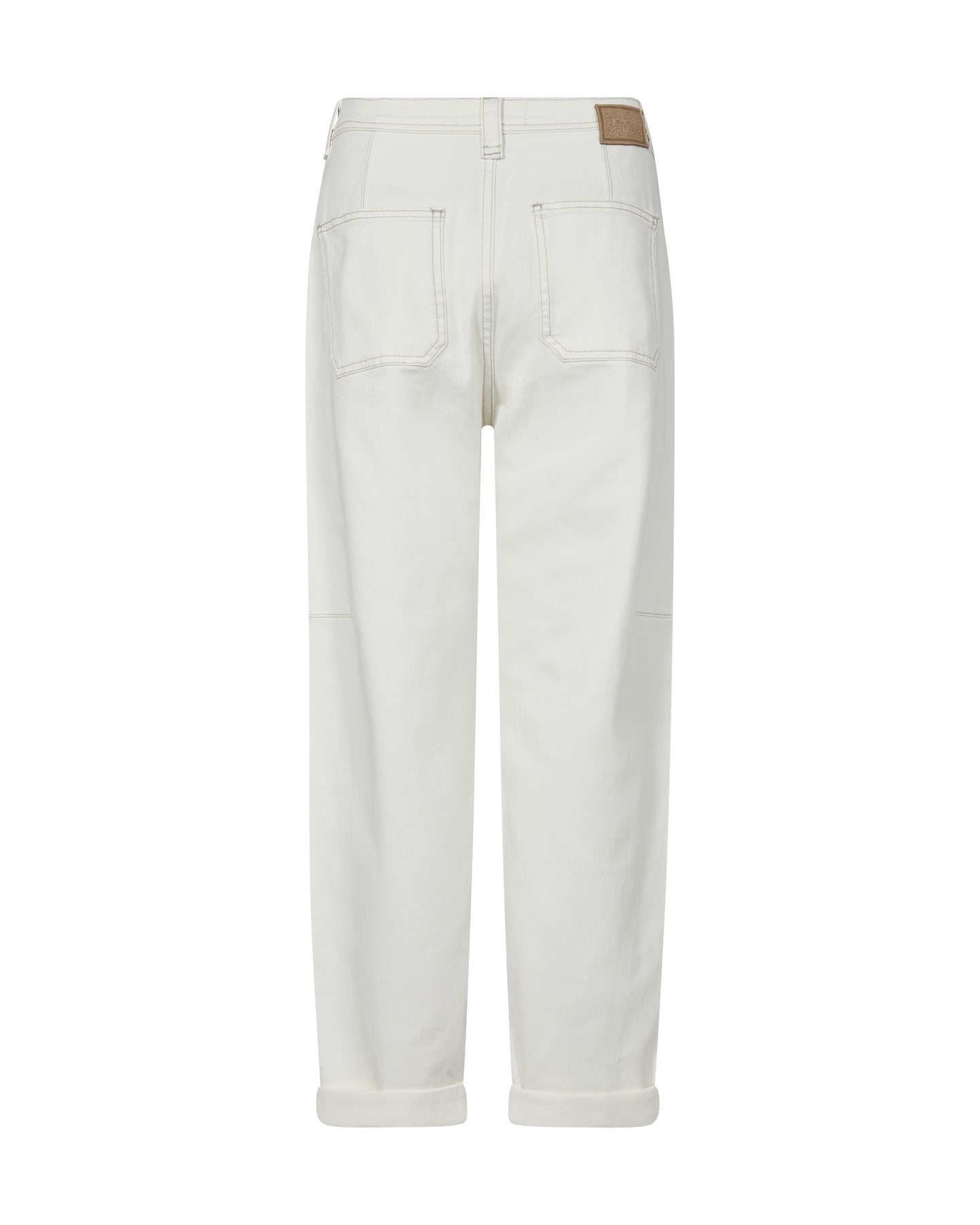 These pants are designed in a relaxed boyfriend fit with a mid-rise waist, offering a cool and effortless look. Crafted from soft cotton with a hint of stretch for comfort, they feature classic details like a button and concealed zipper. Style them with a crisp shirt or a simple tee for a laid-back yet polished outfit.
