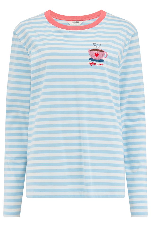 The Brunswick Long Sleeve T-Shirt in white and blue stripes is your go-to for effortless, colourful comfort. Made from soft 100% organic cotton, this relaxed fit t-shirt features long sleeves, a crew neckline, and vibrant neon rainbow stripes across a classic black base. The bold horizontal stripe design adds a touch of retro charm, while the contrast neckline and easy silhouette make it perfect for everyday layering. A timeless essential with a fun twist.