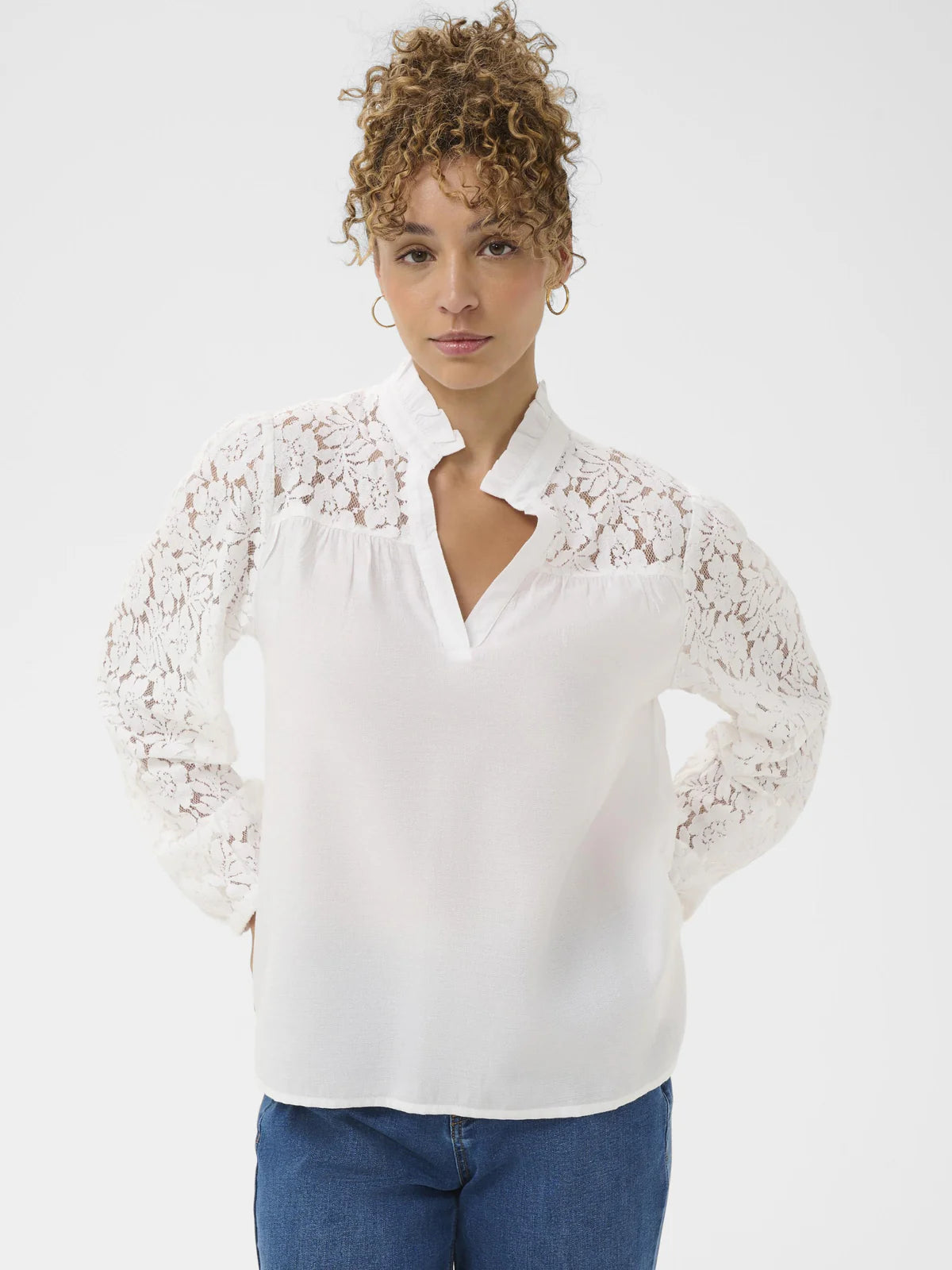 Fresh, feminine blouse with soft lace sleeves which are elasticated at the cuff. The neckline is flattering for all bust sizes. The Liselin blouse can be dressed up or down.