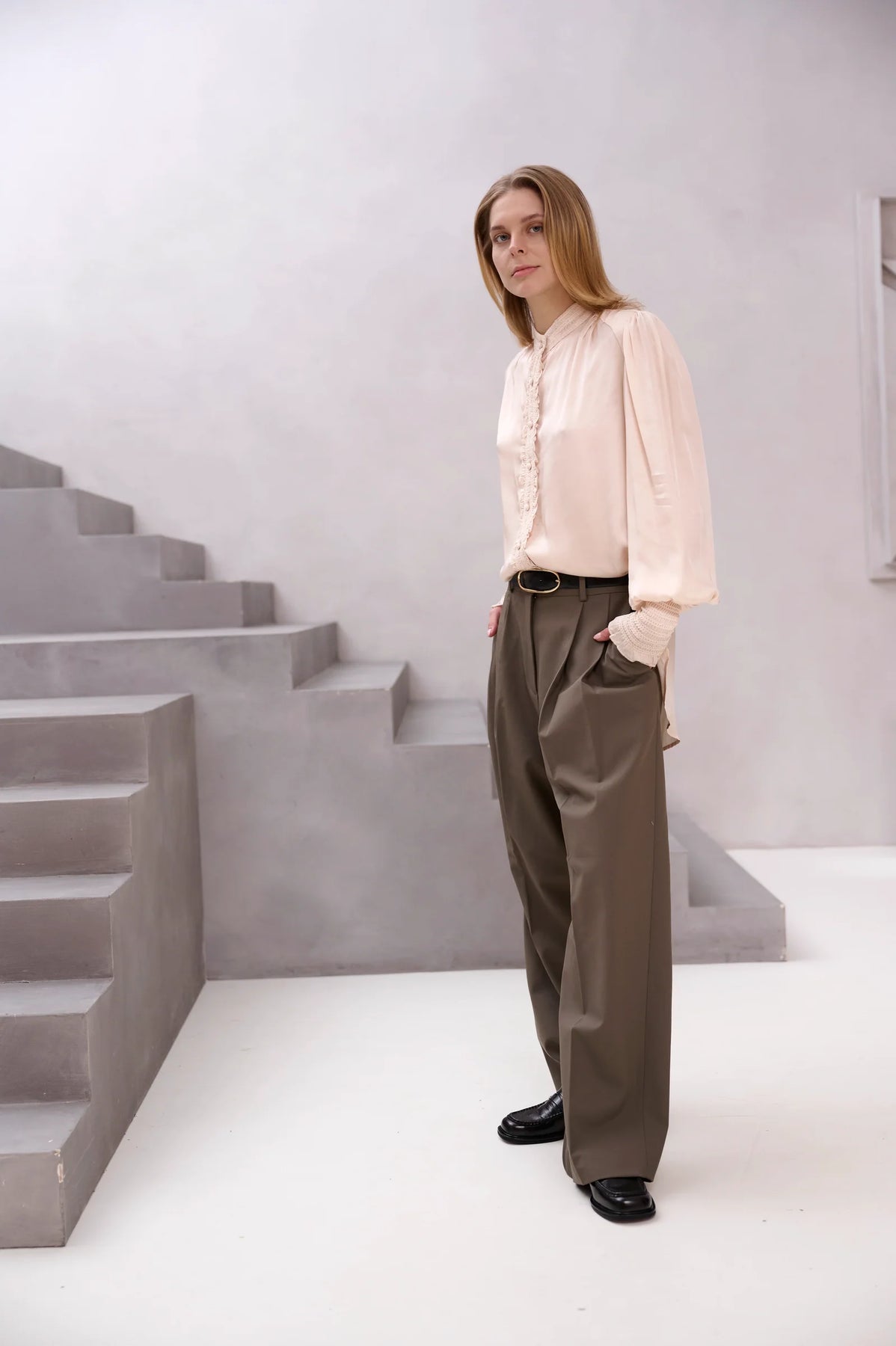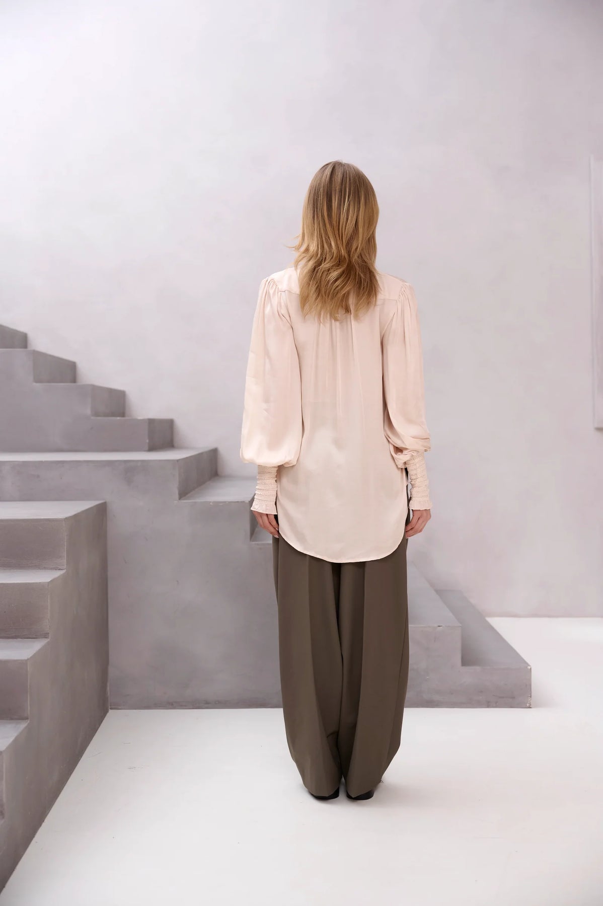 Designed for all-day comfort, the Sofia Shirt is crafted in 100% Modal with a relaxed, true-to-size fit. A smocked front placket adds subtle frill detailing, while the smocked band collar and cuffs introduce texture and structure. Pleated shoulders enhance the structure of the full sleeves without overwhelming the silhouette.
