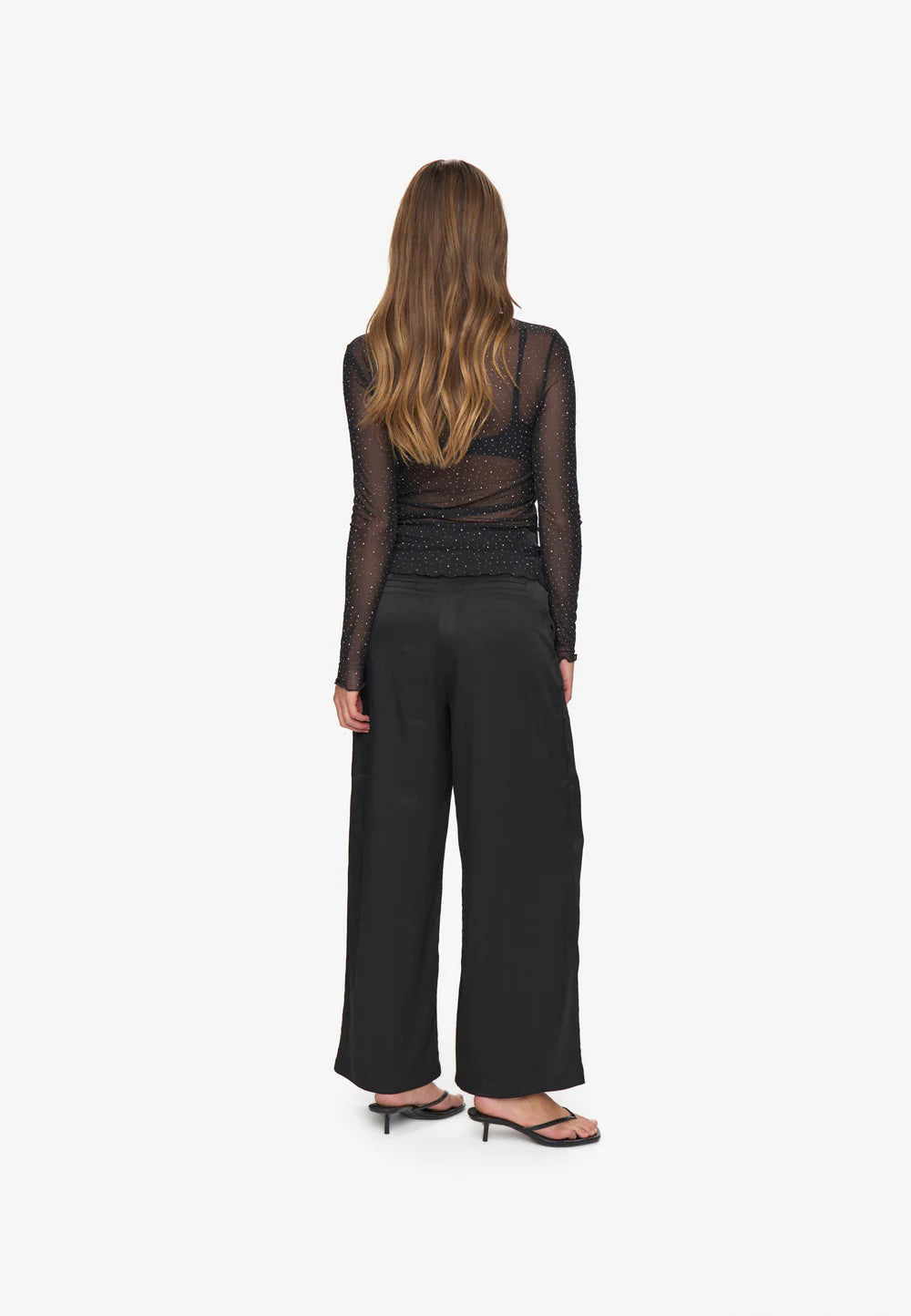 This long-sleeved t-shirt combines a snug fit with a light, sheer mesh structure, creating a sophisticated and feminine look. It's ideal as a stylish base layer under a blazer or as a festive alternative to a classic top.- Snug fit